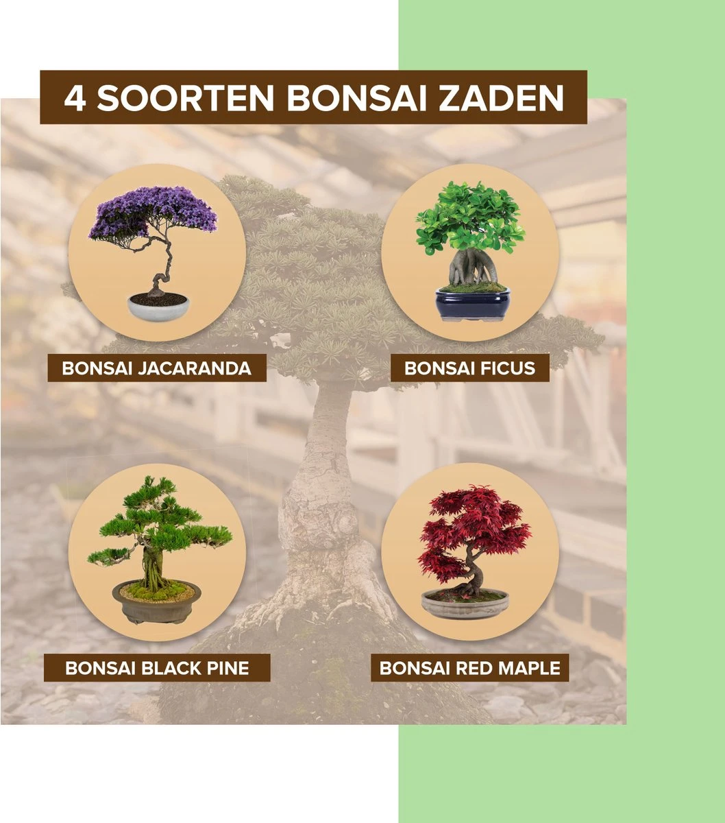 - Zaden voor 4 verschillende en prachtige bonsai bomen