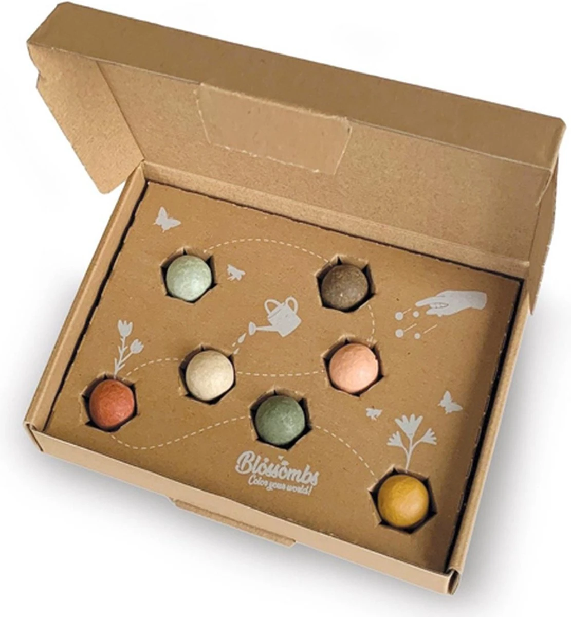 Een mooi, klein geschenkdoosje met 7 kleurrijke Blossombs. Leuk als cadeautje!