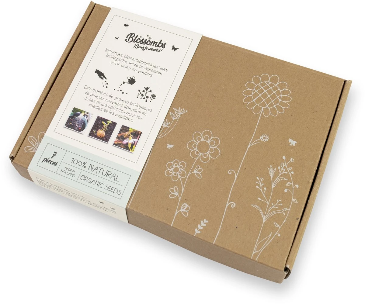 voor bijen en vlinders. Gooi de Blossombs overal waar je maar bloemen wilt; in de tuin, op het balkon of een braakliggend stukje grond, wacht op de regen (of gebruik een gieter) en na een paar weken genieten jij, de bij en de vlinders van de