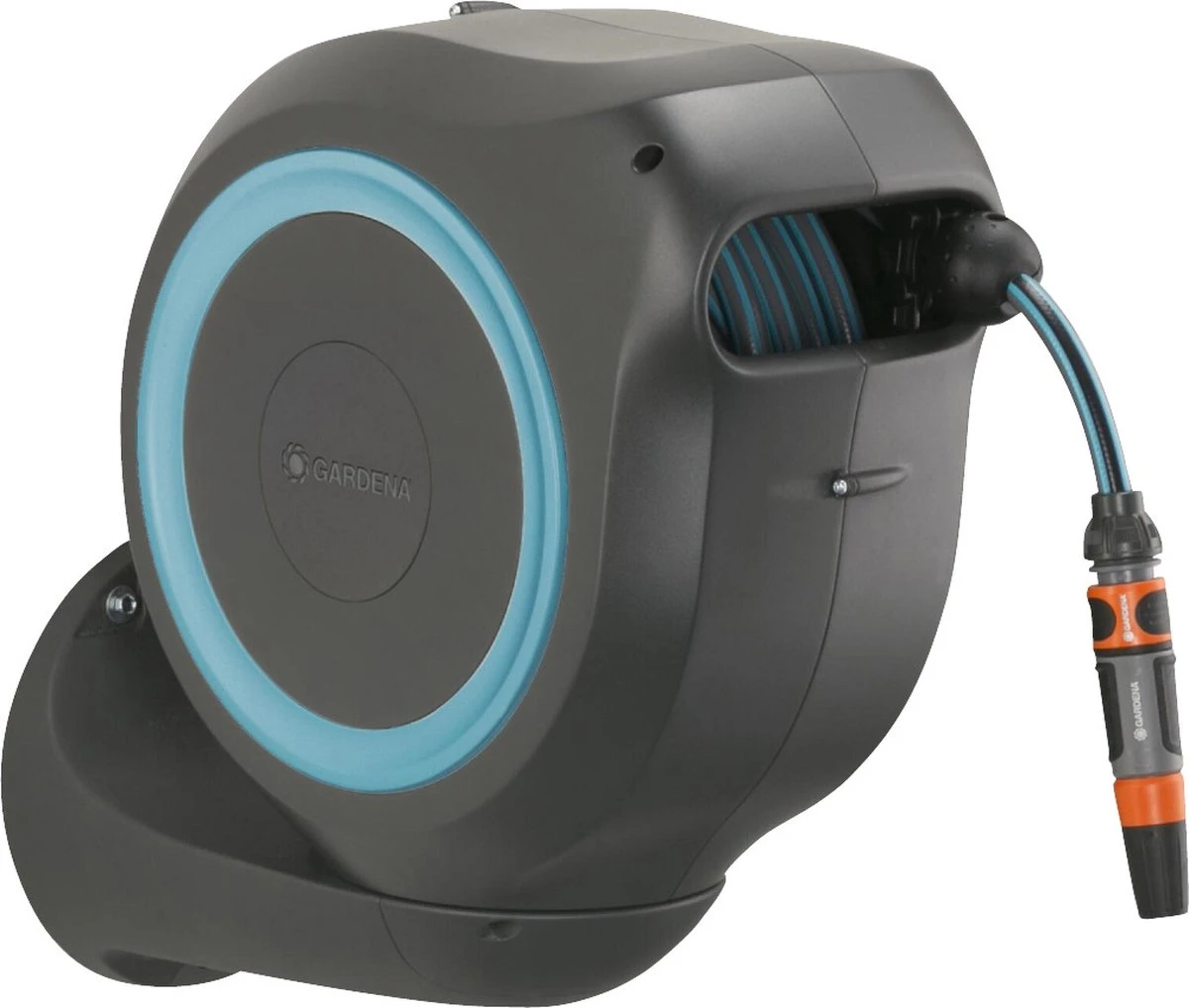Met de Wandslangenbox RollUp M is het bewateren van een grote tuin aangenaam en eenvoudig. Je bevestigt de compacte slangopslag permanent op de muur van het huis en sluit deze met een aansluitslang aan op de kraan. Dankzij de 20 meter lange slang en de 180 graden draaibare slangenbox is het heerlijk om je planten te bewateren en is dit geen corvee meer. De slangenhouder volgt je bewegingsrichting en voorkomt dat de slang gaat knikken of in de war raakt. Nadat je de slang tot de gewenste lengte voor het bewateren hebt uitgetrokken, grijpen de zeer korte vergrendelingspunten zich automatisch vast en blokkeren ze de slang zodra je stopt. Door lichtjes aan het uiteinde van de slang te trekken, wordt het vergrendelmechanisme ontgrendeld en wikkelt een geïntegreerde stalen veer de verlengde tuinslang volledig automatisch, betrouwbaar en gelijkmatig voor je op. Dankzij de innovatieve RollControl-technologie gebeurt het oprollen veilig en gecontroleerd. De geïntegreerde slanggeleider zorgt ervoor dat de slang netjes en gelijkmatig wordt opgerold, zonder dat deze in de knoop raakt. De kraan- en slangaansluitingen van de slangenbox maken deel uit van het Original GARDENA System, zodat je op elk gewenst moment andere GARDENA opzetstukken kunt aansluiten. Je hebt altijd je GARDENA mondstukken bij de hand: ze kunnen onder de muurbeugel worden bevestigd en daar worden opgeborgen om ruimte te besparen. Het hoogwaardige materiaal is UV- en vorstbestendig en bestand tegen weersinvloeden. Daarom kan het systeem het hele jaar door worden gebruikt. Bovendien is de slangopslag beveiligd met een antidiefstalvoorziening. Alle benodigde aansluit- en montageonderdelen worden bijgeleverd in de wandslangenbox RollUp: een muurbeugel, een aansluitslang, alle benodigde Original GARDENA System onderdelen en een mondstuk met twee verschillende sproeiopties.