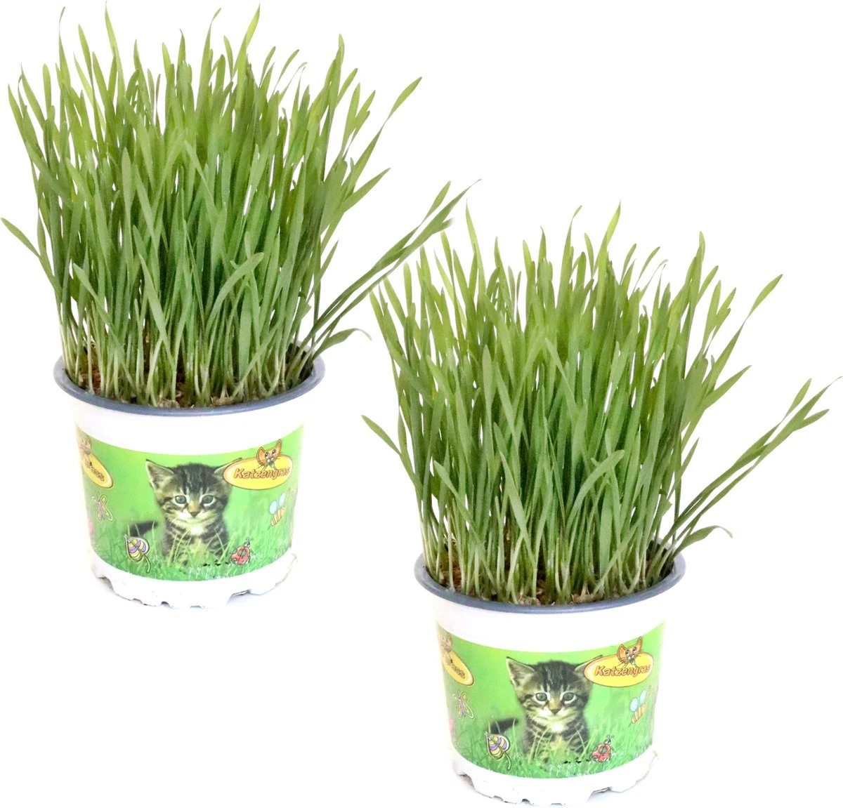 Je ontvangt 2 kwekerspotjes (Ø12cm) met kattengras