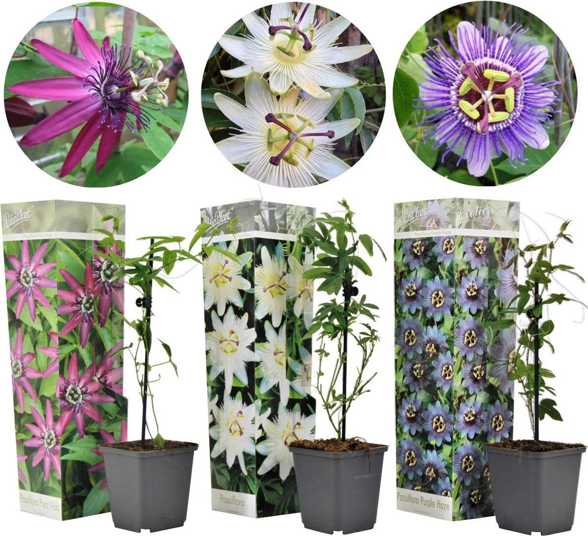 De passiflora komt oorspronkelijk uit Noord-Argentinië. In de tropische en subtropische gebieden is het een bekende plant vanwege zijn zoete vruchten, ook wel bekend als de passievruchten. Al in het eerste jaar na de bloei verschijnen er heerlijke passievruchten. De vruchten smaken fris en zoetzuur. Naast dat de plant heerlijke vruchten geeft, groeien er ook bijzondere, grote bloemen in. Deze bloemen groeien van juli tot september. Hierna volgt het fruit van ongeveer september tot oktober. De passiflora is erg winterhard en dat zorgt ervoor dat de plant het gehele jaar is bedekt met groene bladeren. Het is een klimplant; de planten hechten zichzelf vast en zullen snel een latwerk of een muur bedekken. Het zijn sterke en snelle groeiers en hebben veel bloemen. Verder zijn het ideale planten voor in een pot maar kan ook in de volle grond geplant worden. De passiflora planten kunnen groeien tot wel 3 of 4 meter. Ook is de passiflora erg aantrekkelijk voor bijen en vlinders.