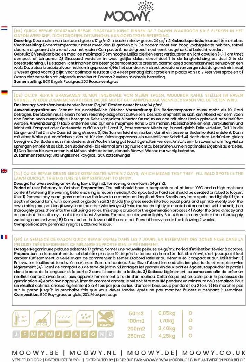 - Snelle en stevige groei; graszaad ontkiemt in 7 – 14 dagen