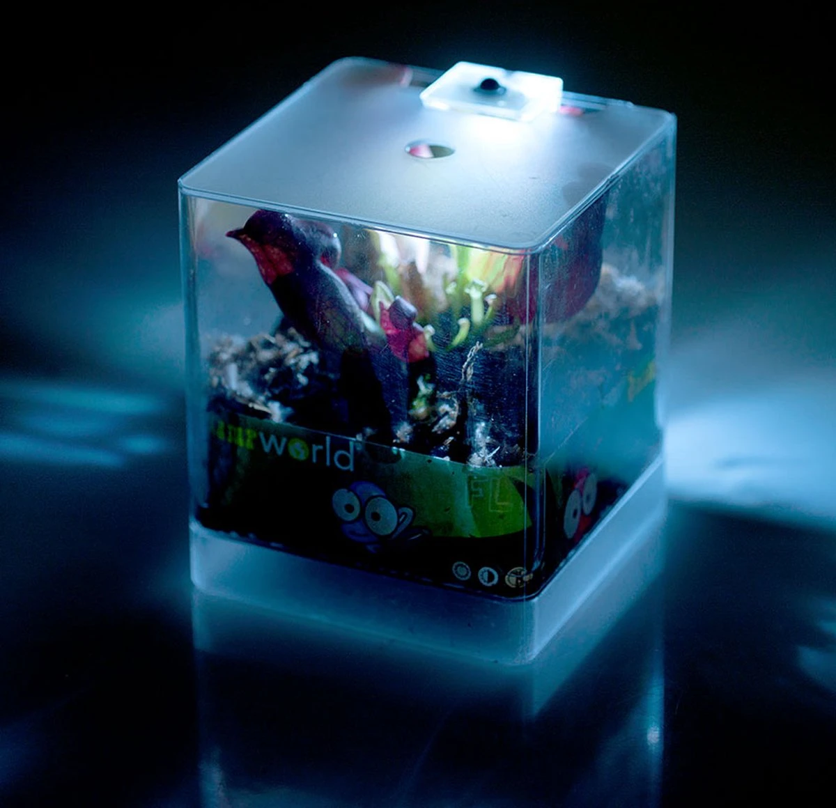 - Kunststof terrarium (L12xB12xH15cm) incl. led-verlichting (excl. 4 AA batterijen)