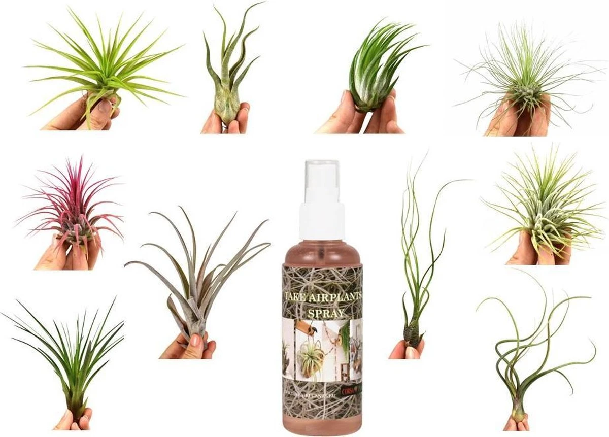 Tillandsia mix pakket van 10 luchtplantjes met verzorgingspray! Deze trendy luchtplantjes zijn steeds meer populair in het interieur en je kunt er de leukste creaties mee maken! Ook zijn de plantjes gemakkelijk te verzorgen. Ze hebben geen aarde nodig, alleen af en toe een waternevel en wat Tillandsia voedingspray. De plantjes staan of hangen graag op een lichte plek waar veel verse lucht komt!